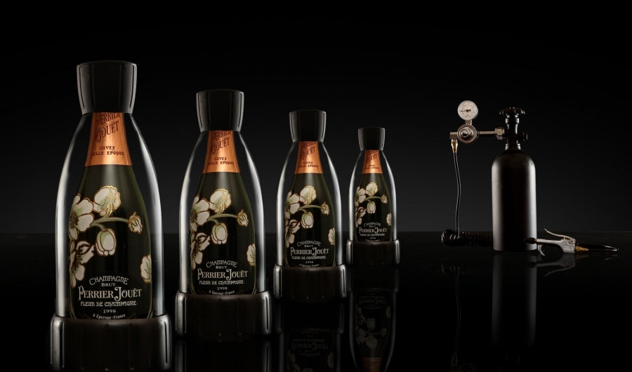 The Perlage System® is a revolutionary new product for preserving opened bottles of Champagne and sparkling wine. Using the Perlage System, opened bottles of Champagne will maintain their flavor and sparkle for weeks or even months. With Perlage, you will never waste a drop of Champagne again.